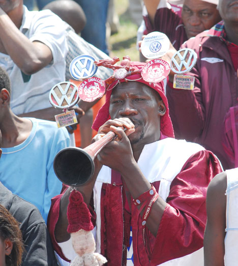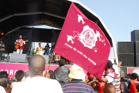 1.This is Rasta as he well known, the No.1 Birds supporter; 2. The was the Birds supporter who himself a VW Polo during the celebration of the Birds 60 years annivesary; 3. The Birds fan carrying the flag of the Beautiful Dube Birds at fastivel during the 60 th annivesary; 4. This is one of the Birds loyalty supporter playing the Vuvuzela in one of The Birds game. |