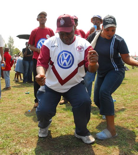 1.Here is the brother and sister, both are the dying fans' Dube Birds; 2.This Dube Birds' fan was showing his jigga talents; 3.The Dube Birds' fans having fun in the stadium as the club is on the lead; 4.The Dube Birds' supporters manager Sya Sangweni with some of the fans; 5.The happy smilling of the Dube Beautiful Birds fans. |